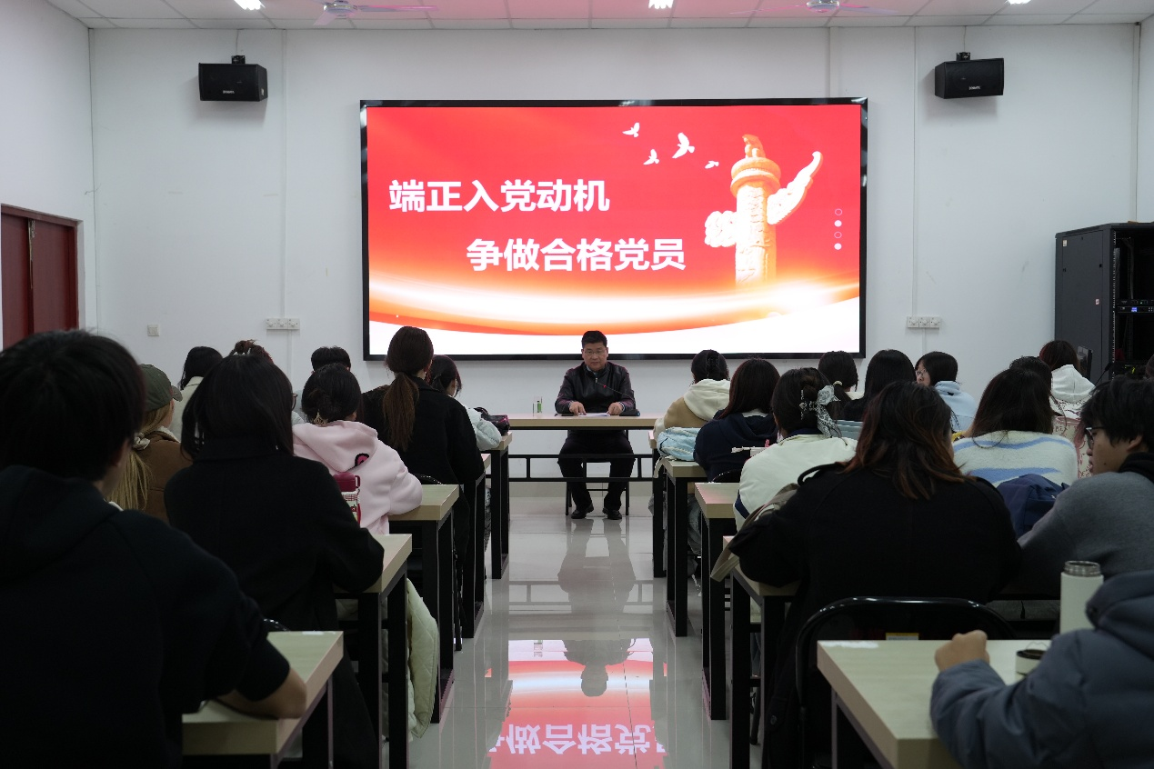 为了切实加强入党积极分子队伍建设,10月24日晚,BBIN宝盈集团党委副书记周玉亮于博雅楼B102教室为入党积极分子讲授“端正入党动机,争做合格党员”的专题党课。