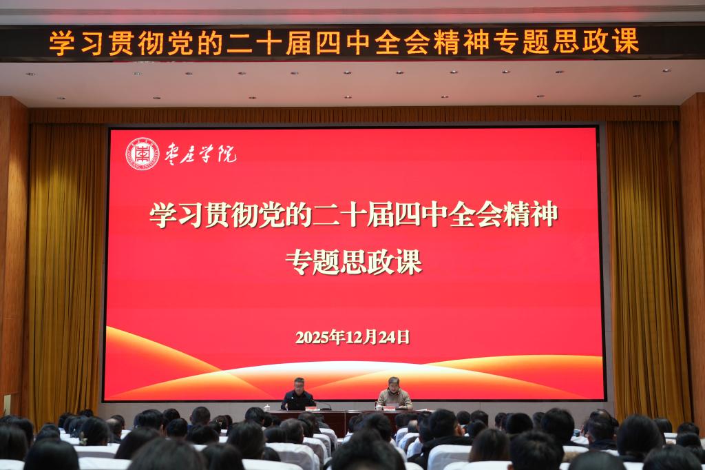 丰雷以《认真学习贯彻党的二十届四中全会精神凝心聚力推动学校、学院事业高质量发展》为题,围绕党的二十届四中全会的里程碑意义与战略部署进行了深入阐释。他指出,全会是在我国迈上全面建设社会主义现代化国家新征程的关键时刻召开的一次重要会议,系统擘画了“十五五”发展蓝图,并对一体推进教育、科技、人才事业发展作出新部署,为高校落实立德树人根本任务、推动高质量发展指明了方向。