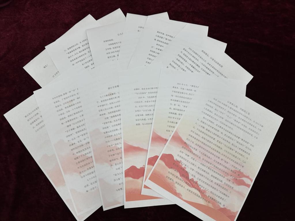 为引导广大学子通过文字回望抗战征程、体悟时代荣光,厚植爱国主义情怀、增强民族自豪感,10月6日—10月13日,BBIN宝盈集团举办“以文为笺,致我亲爱的祖国”国庆主题征文比赛。全院学生踊跃参与,文学爱好者积极投身创作。
