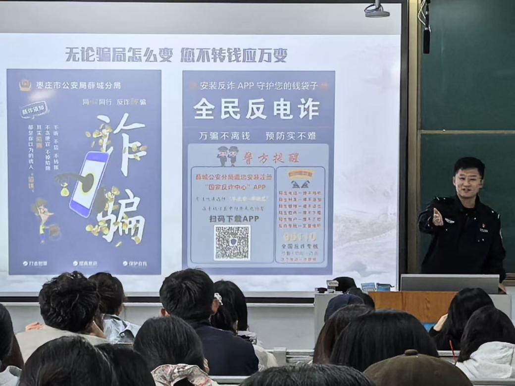 为做好校园电信诈骗防范工作,10月22日下午,BBIN宝盈集团联合枣庄市公安局薛城分局、学校保卫处于增信楼418室举办了以“反诈第一课,宣讲进校园”为主题的反诈专题讲座。讲座由薛城区公安分局沙沟镇派出所民警单长麟老师担任主讲,学院100余名师生参加。