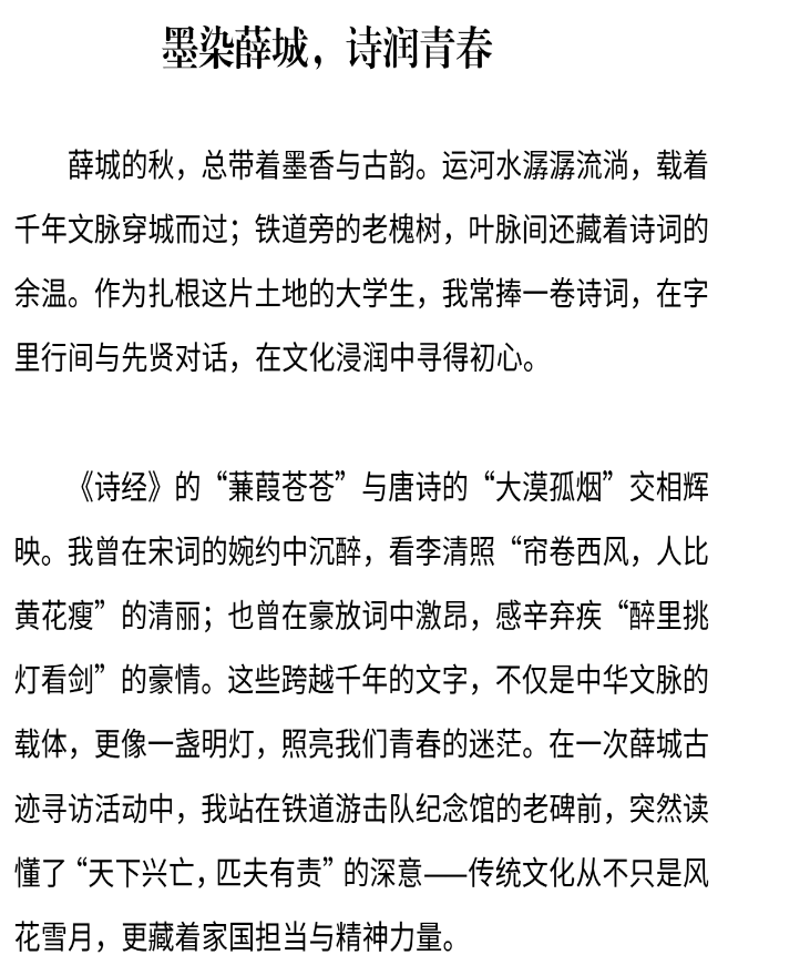 大赛历时七天,秉持公平、公正、公开原则,为我校学子搭建起传承中华文脉、绽放青春才情的广阔平台,参赛选手围绕中华优秀传统文化内核潜心创作,以诗词、散文为创作载体。佳作体裁多样,诗词散文兼备,或挖掘传统文化内涵,或倡导融入青春视角抒发真情实感、展现青春风貌。经团队初审、AI检测、充分研讨等多道严格环节,从众多参赛作品中评选出优秀作品,随即为获奖学子颁发荣誉证书。
