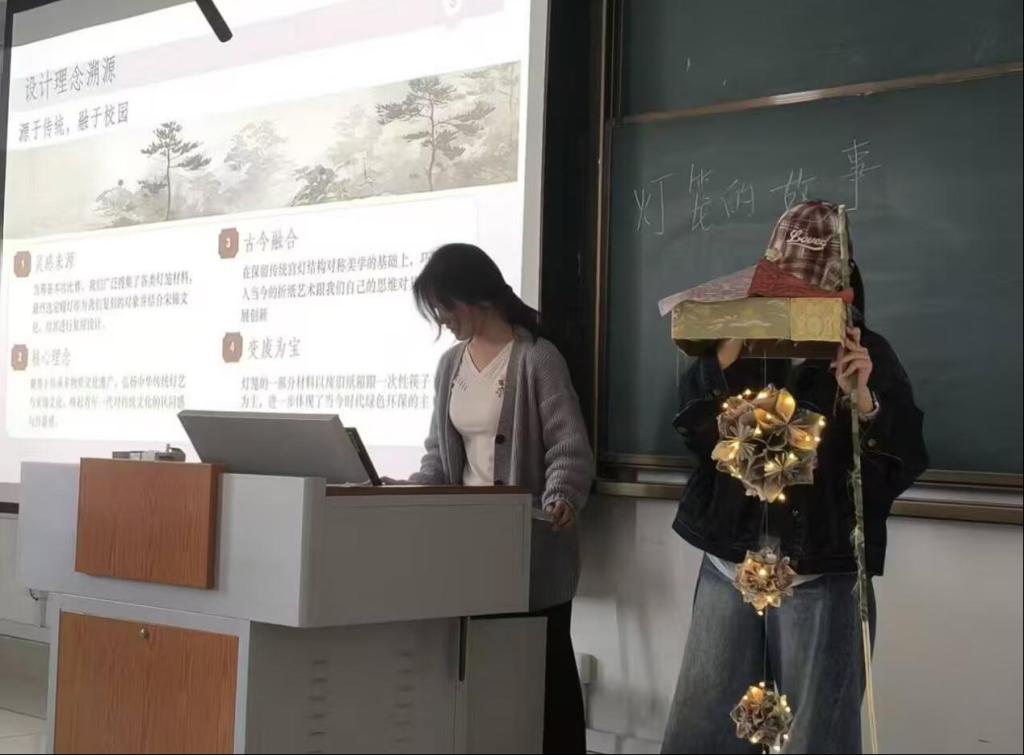 在“灯笼的故事”分享会现场,多盏融合非遗技艺与现代创意的灯笼惊艳亮相,作品既有传统宫灯的典雅形制,又融入了青年视角下的时尚元素与文化表达,形制多样、意蕴丰富,既保留了传统灯笼的文化底蕴,又展现出新时代大学生的审美与创造力,生动诠释了传统灯笼文化“在传承中创新、在创新中传承”的独特内核。