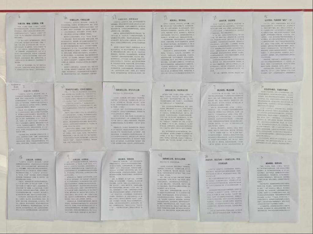 活动以诚信征文、反诈绘画为载体。在“以诚立身,以信致远”诚信主题征文中,同学们结合自身经历,从考试诚信、信守承诺等小事出发,诠释诚信的价值;部分同学结合社会现象,反思诚信缺失的影响,倡导坚守诚信底线,作品内容真挚、立意深刻。“擦亮双眼防诈骗,守护青春不‘踩坑’”反诈绘画大赛中,同学们以创意画作的形式,展现各类诈骗场景与防范方法。作品还原充值返利、冒充客服等常见骗局,提醒大家警惕陌生信息;有的作品以温馨画面传递“不轻信、不透露、不转账”的反诈原则,兼具创意与警示性。