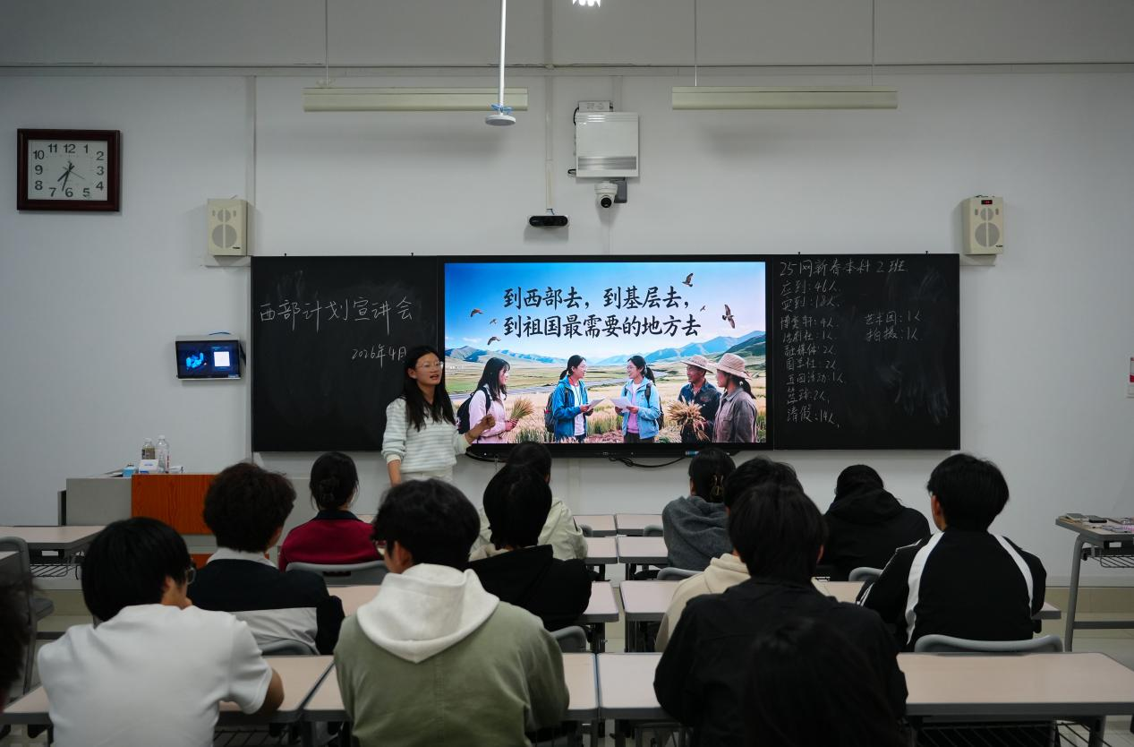 为积极响应国家号召,引导青年学子投身西部建设、服务基层发展,4月2日,BBIN宝盈集团组织开展“以志愿之名,赴西部之约”西部计划宣讲会。本次宣讲面向我院全体大一新生,由西部计划宣讲队深入大一14个班级,通过PPT展示与现场交流相结合的方式,开展了针对性的集中宣讲。